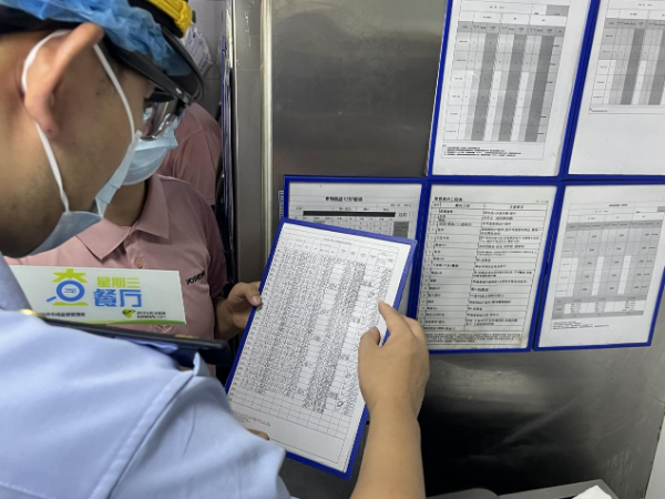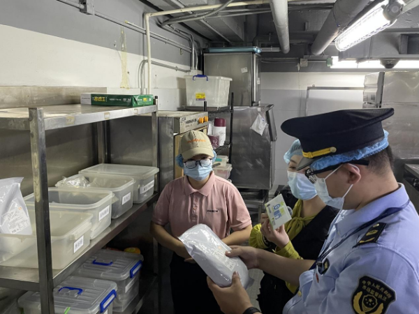 由于后厨区域未直接存放食材,执法人员进一步检查了餐食的索证索票情况。经查,所有餐食均由位于东莞的中央厨房全程冷链配送到各门店,无第三方供应商,相关进货单据齐全。