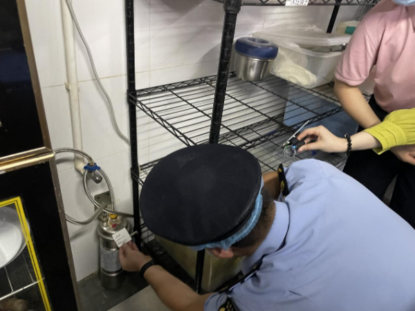 据介绍,后厨过滤水滤芯三个月左右更换一次。经执法人员现场检查,滤芯于今年8月更换,符合管理规范。