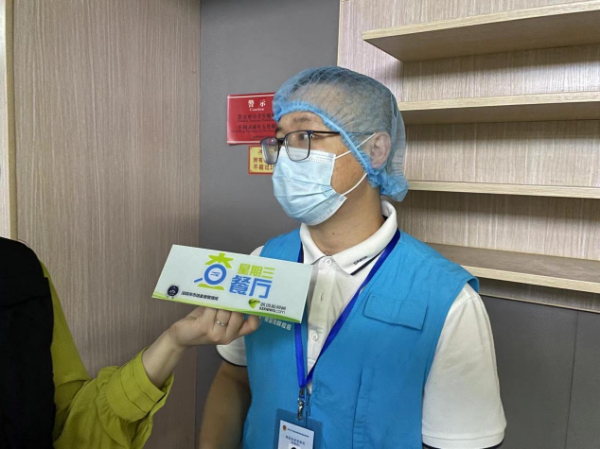 后厨工作人员介绍油品检测和更换周期